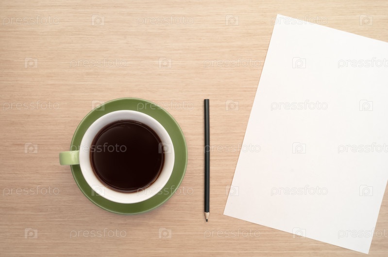 Зеленая чашка кофе и лист бумаги