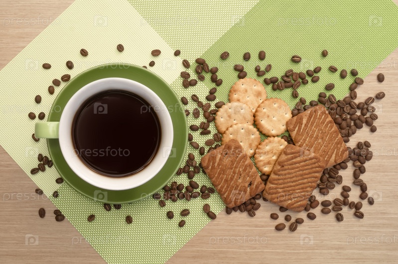 Зеленая чашка кофе и печенье
