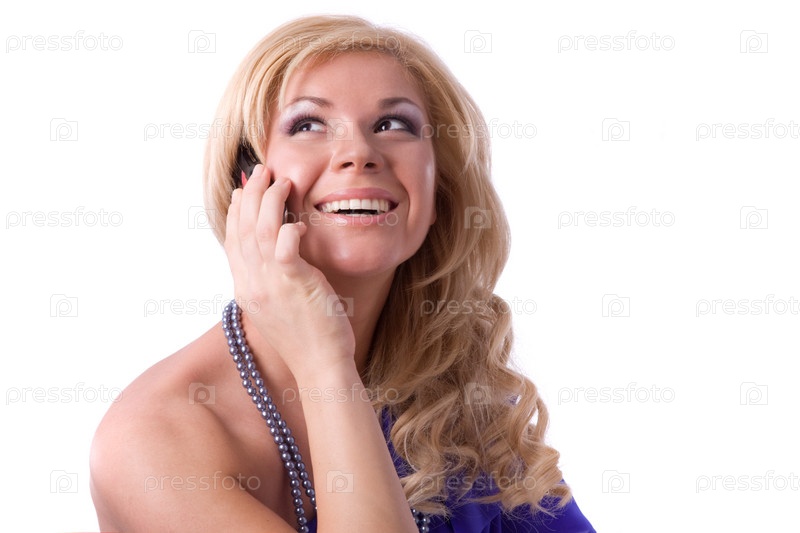 Улыбающаяся девушка разговаривает по мобильному телефону