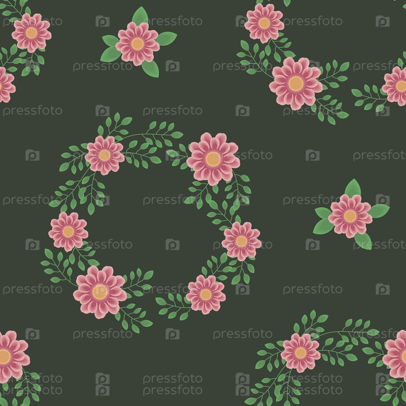 Темно-зеленый с розовыми цветами и листьями