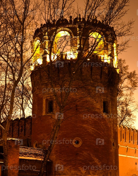 Зимний вид на бастион и стены Донского монастыря, Москва, Россия