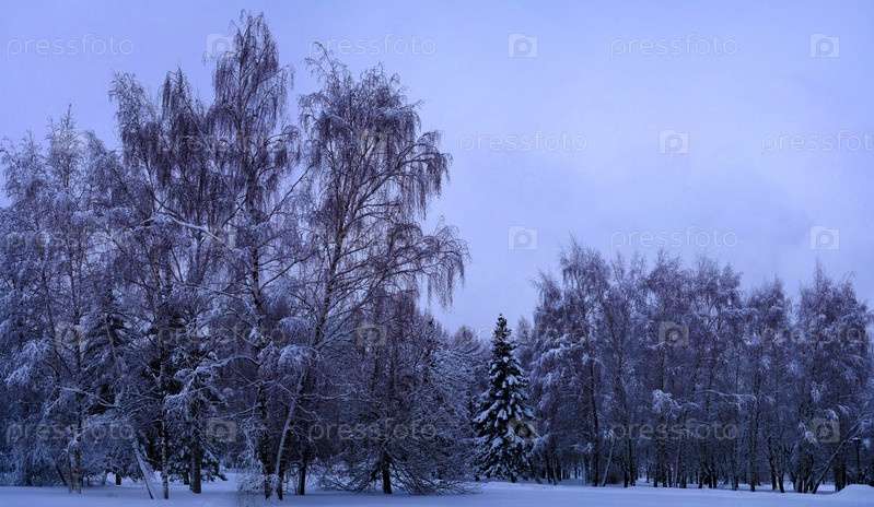 Лес в имении Коломенского после снегопада в Москве, Россия
