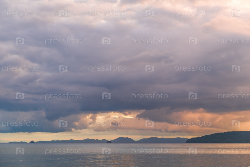 Красивое фиолетовое небо над морем во время заката, курорт Таиланда