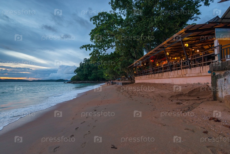 Песчаный пляж Ао Нанг, провинция Краби в Таиланде во время заката