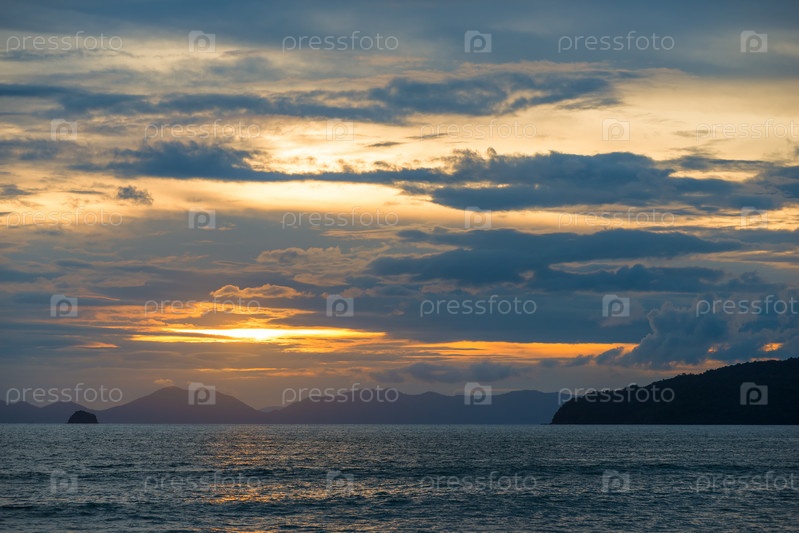 Красивые облака и оранжевый закат над морем