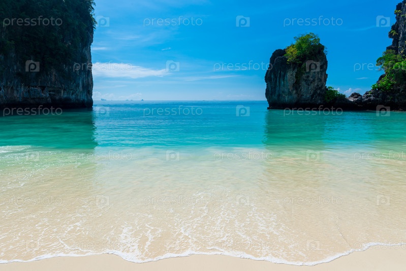 Морская волна спокойного бирюзового моря на белом песчаном пляже в Таиланде