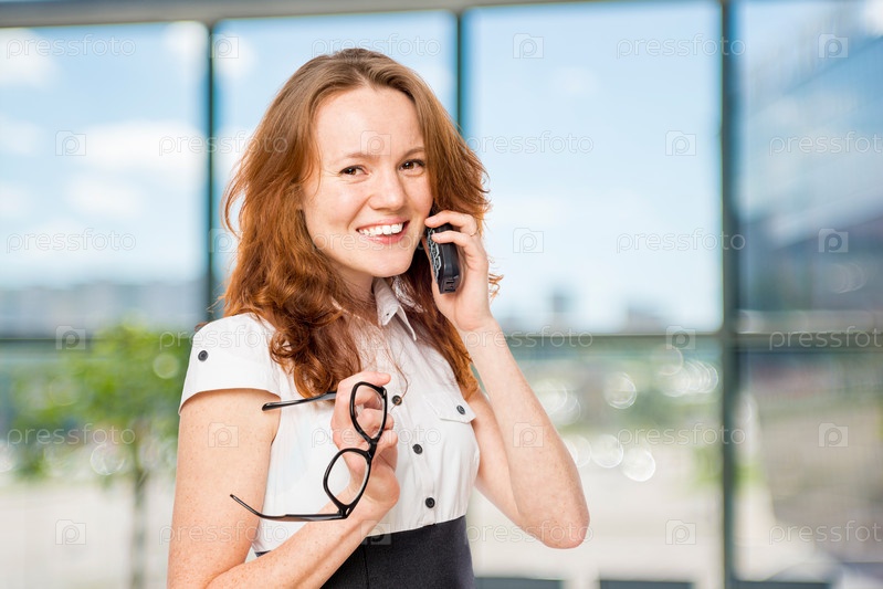 Горизонтальный портрет служащего с телефоном