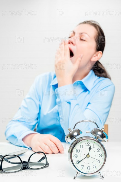 Усталая зевающая женщина в офисе
