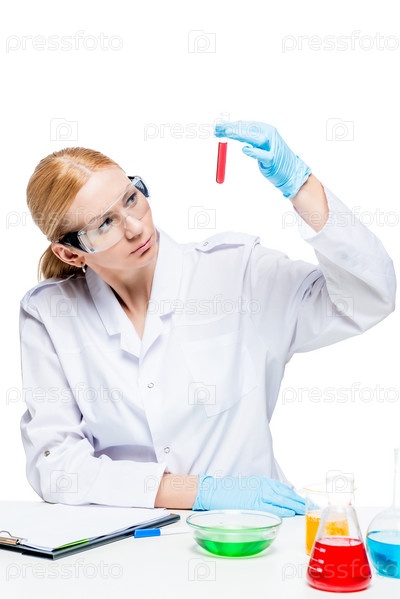Сконцентрированный лаборант в очках проводит эксперименты с жидкостями в пробирках