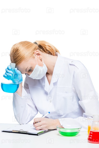 Усталый химик записывает результат испытаний в записной книжке