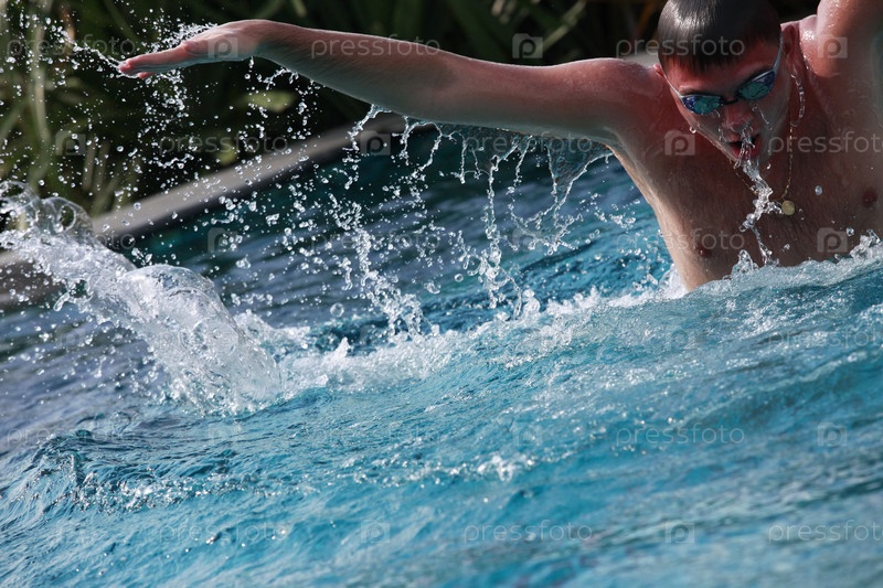 Молодой человек в плавательном бассейне
