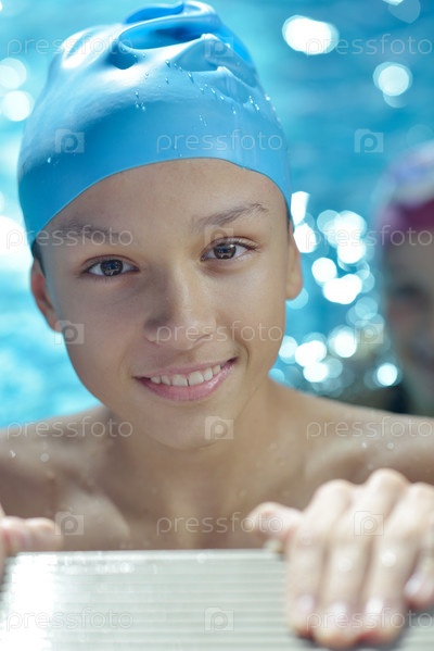 Счастливый ребенок в бассейне