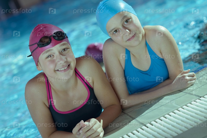 Счастливые дети в бассейне