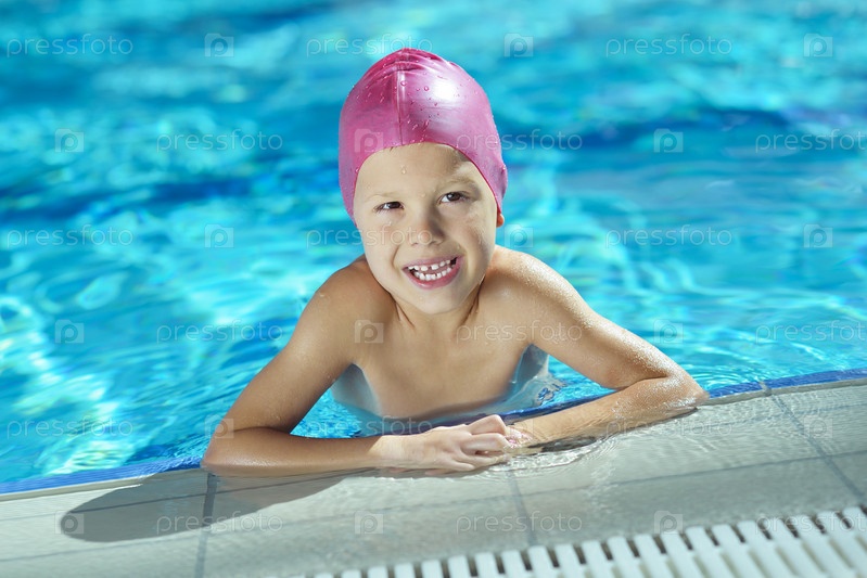 Счастливый ребенок в бассейне