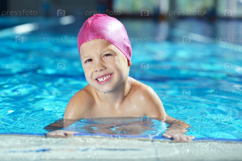 Счастливый ребенок в бассейне