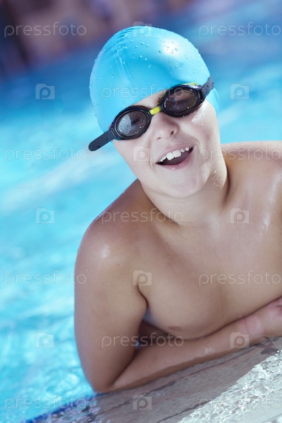 Счастливый ребенок в бассейне