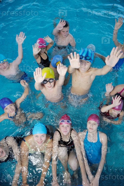 Счастливые дети в бассейне