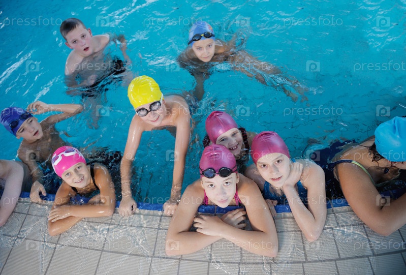 Счастливые дети в бассейне