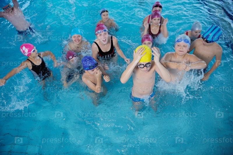 Счастливые дети в бассейне