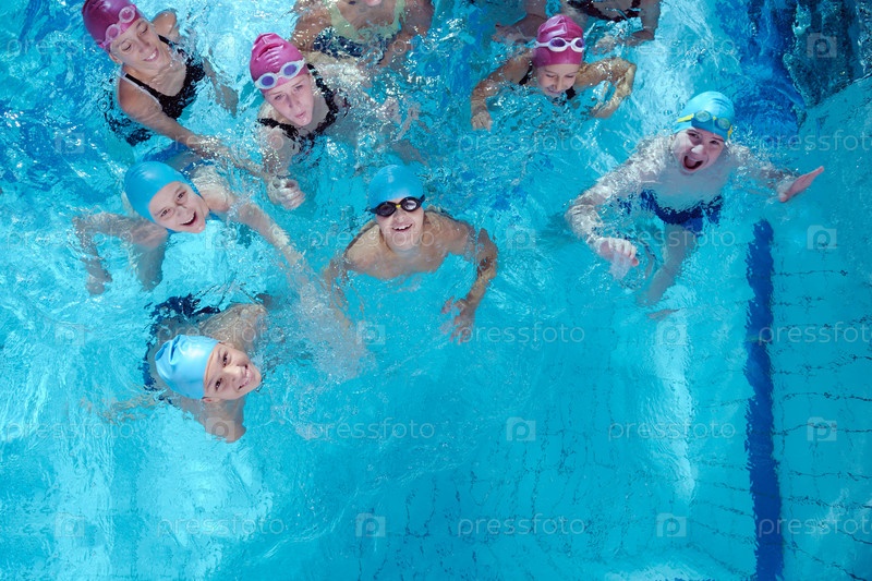 Счастливые дети в бассейне