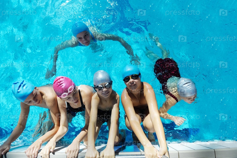Счастливые дети в бассейне