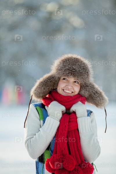 Молодая женщина в снежной меховой шапке