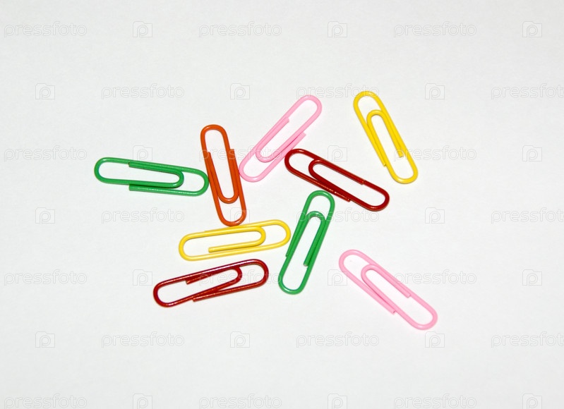 Разноцветные скрепки на белом фоне