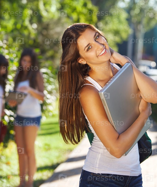 Счастливые молодые студенты на открытом воздухе в солнечный день