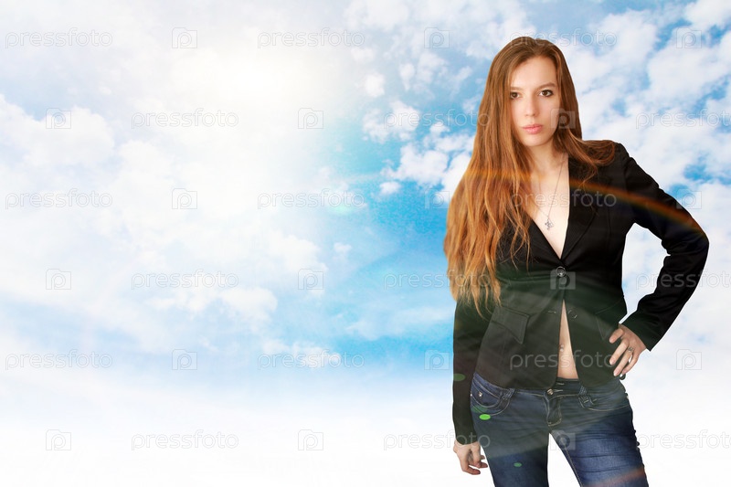 Жизнерадостная девушка, абстрактный портрет на фоне неба
