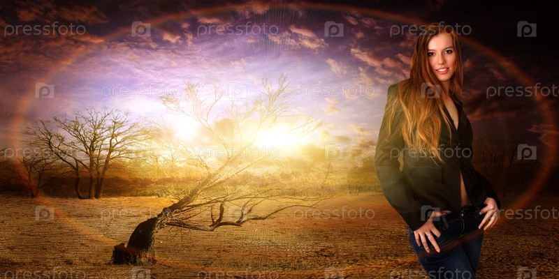 Жизнерадостная девушка, абстрактный портрет на волшебном фоне
