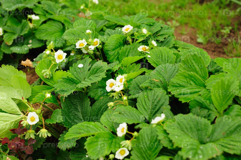 Кустики цветущей клубники