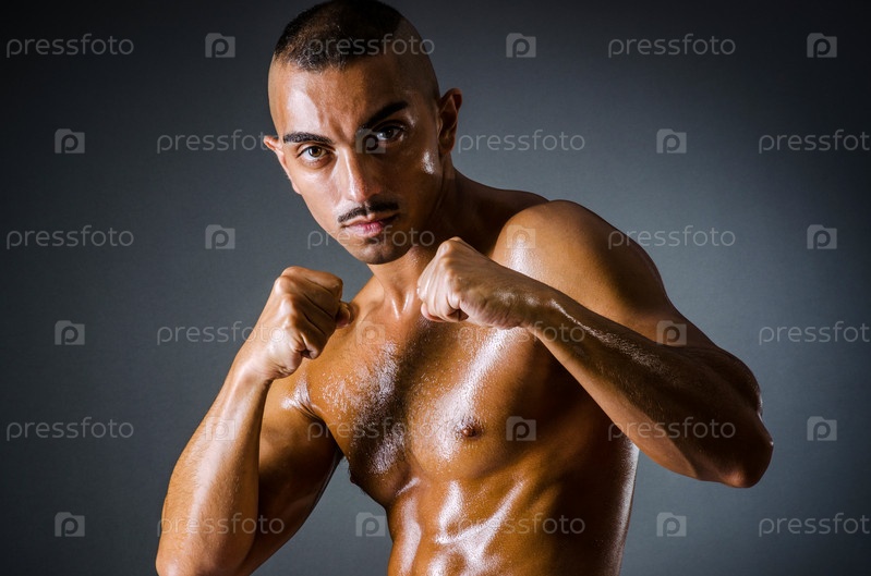 Мускулистый боксер на темном студийном фоне