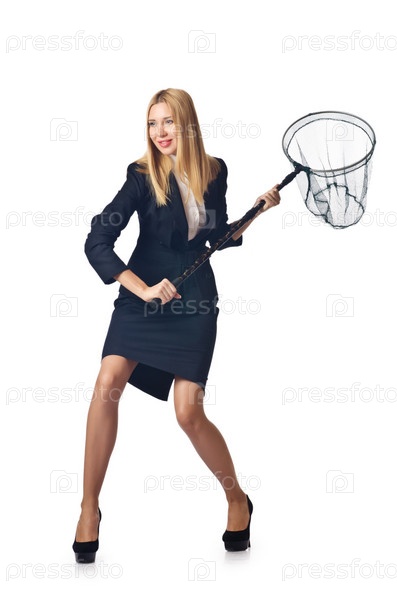 Женщина с сетью, изолированная на белом
