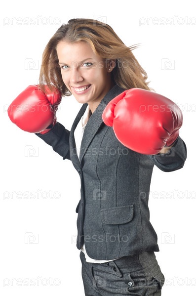 Молодая деловая женщина в боксерских перчатках