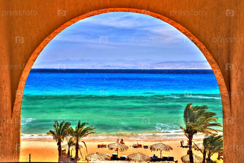 Вид на пляж через арку