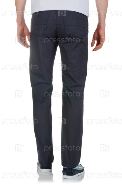 Концепция моды с брюками на белом фоне