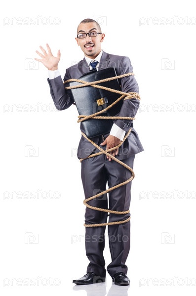 Бизнесмен, связанный веревкой
