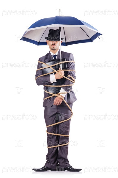 Бизнесмен, связанный веревкой
