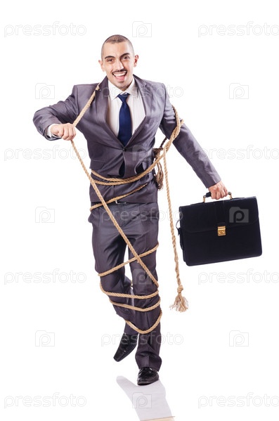Бизнесмен, связанный веревкой