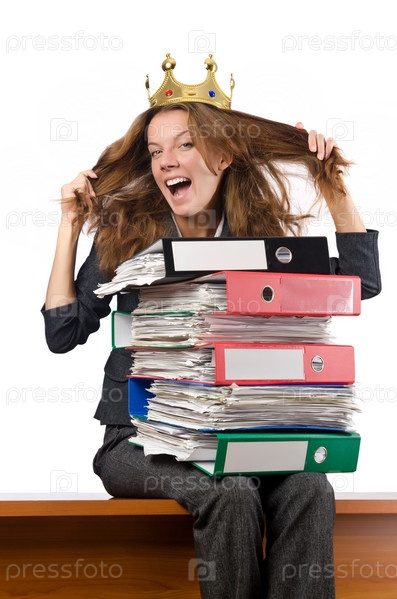 Бизнес-леди с большим количеством папок