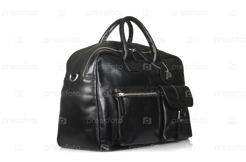 Черный кожаный портфель, изолированный на белом