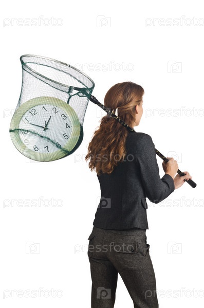 Бизнес-леди с сачком и часами