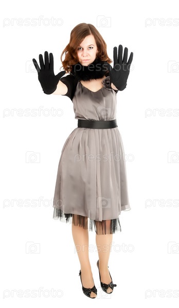 Симпатичная женщина показывает жест СТОП