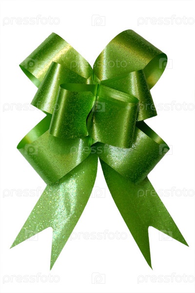 Зеленый праздничный бант на белом фоне