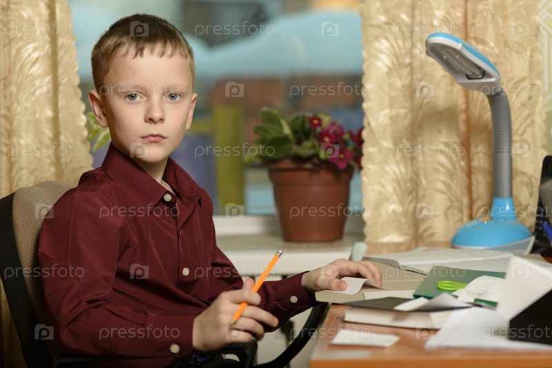 Мальчик работает за письменным столом