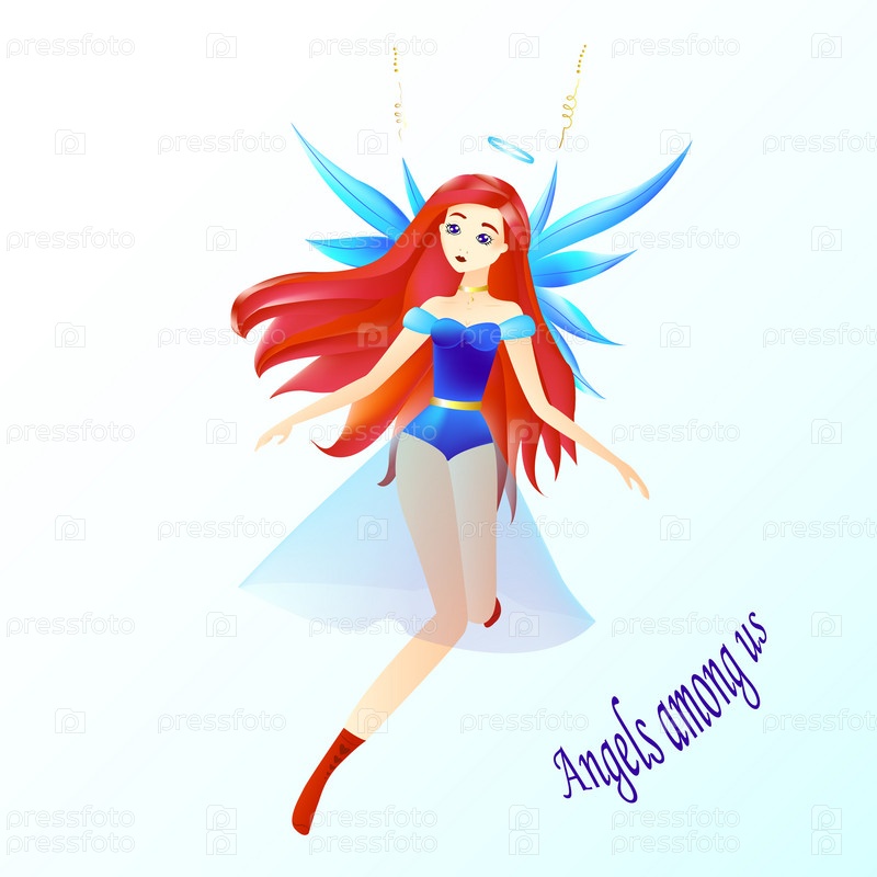 Девушка с красными волосами и голубыми крыльями