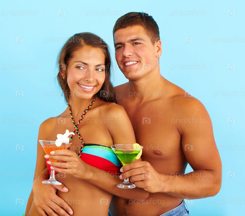 Пара с коктейлями