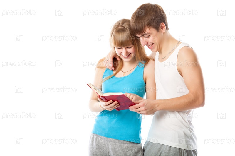 Молодая пара читает книгу