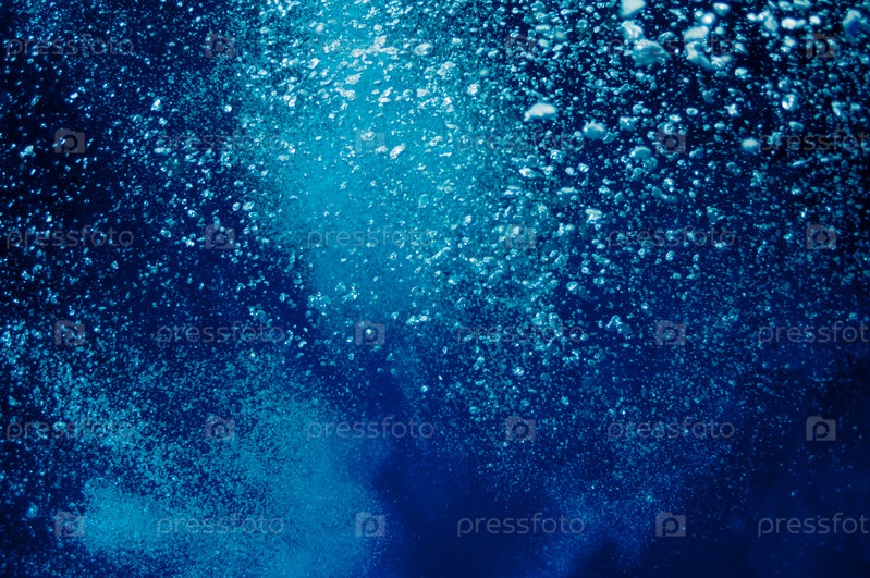 Всплывающие пузыри воздуха в синем море