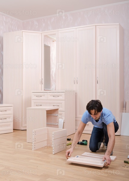 Мастер занимается сборкой мебели